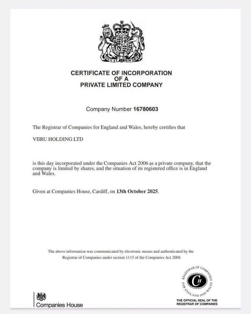 Viiru Holdings is officially registered in the United Kingdom and operates fully in compliance with UK laws and regulations.